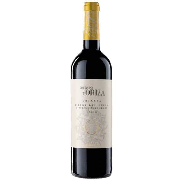 Condado de Oriza se asienta en el corazón de la Ribera del Duero, aprovechando las características únicas de sus suelos y el clima extremo para cultivar uvas de la más alta calidad, predominantemente Tempranillo (Tinta Fina). Este Crianza ha sido cuidadosamente envejecido en barricas de roble, lo que le confiere una complejidad y unos matices que se integran a la perfección con la fruta.